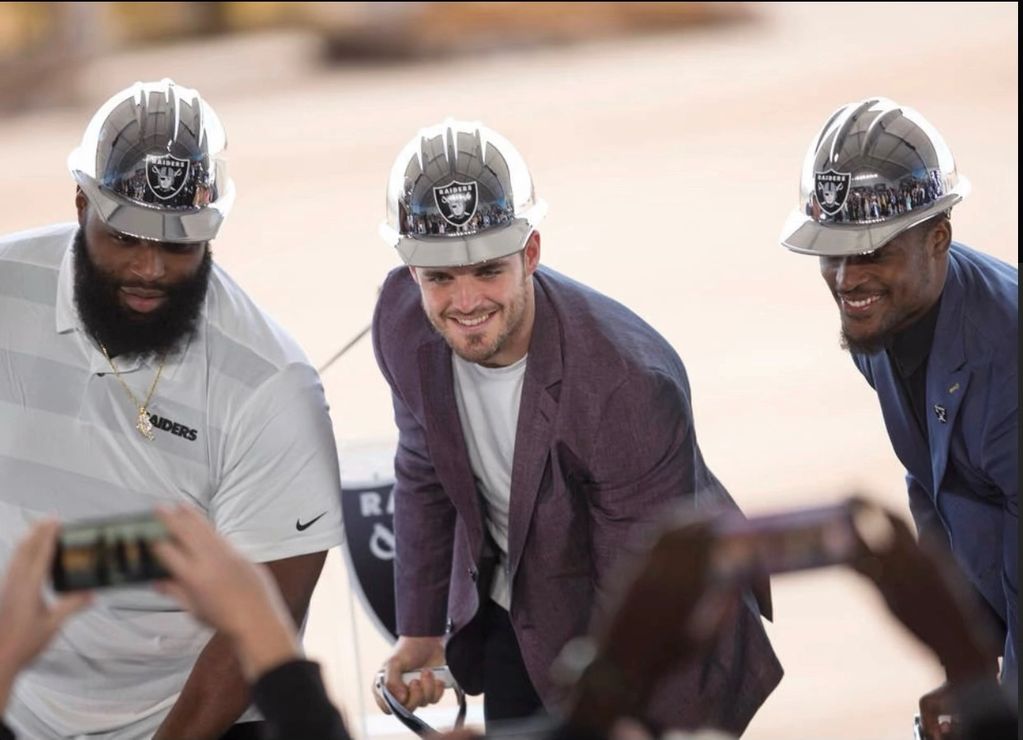Ground breaking shovel used for Las Vegas Raiders Headquarters in Henderson NV, Derek Carr, Justin Ellis, and Tahir Whitehead.